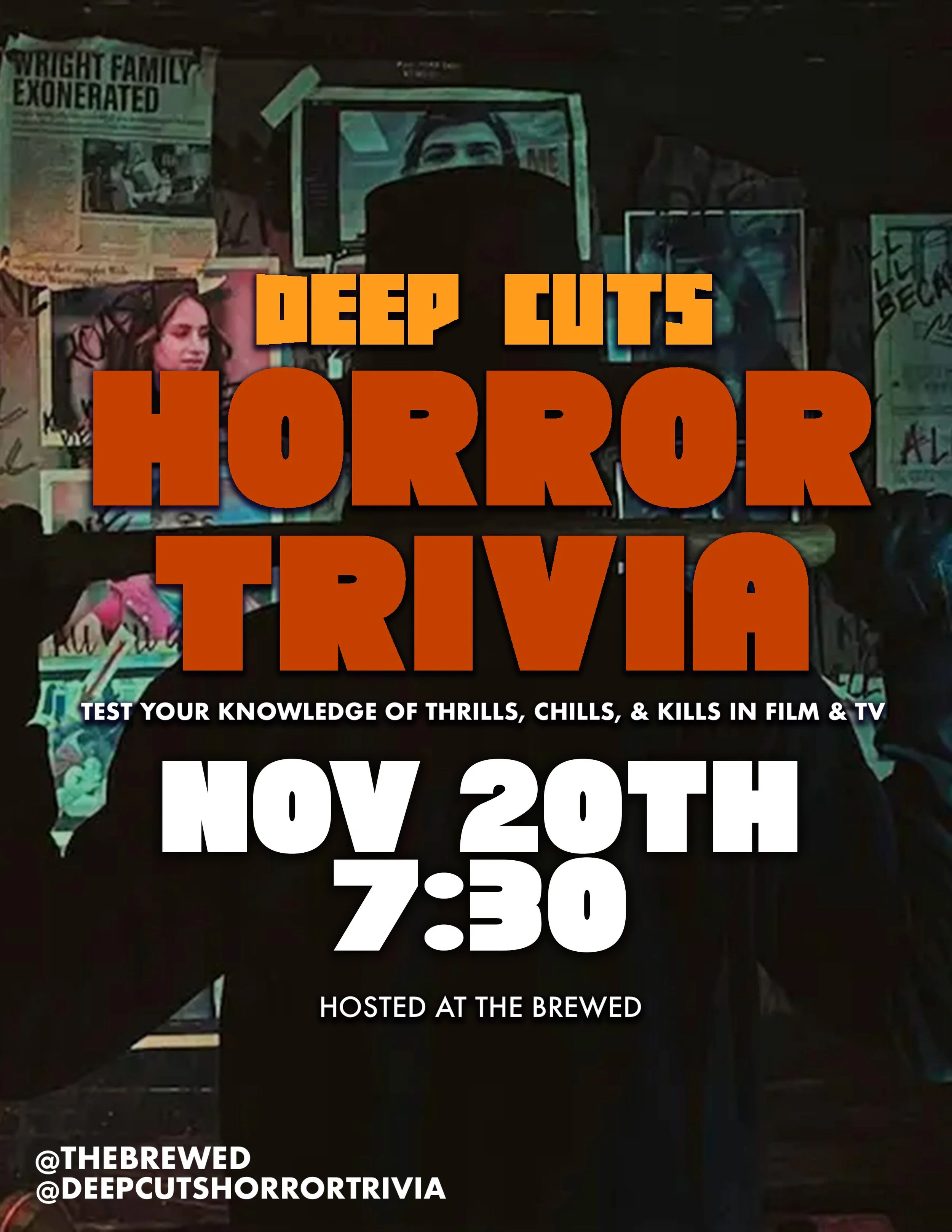 Deep Cuts Horror Trivia is on 15th at 7:30 PM. Teams of 1-6 are welcome! Don't have a team? We can find you one. Bring a pencil and chair if you can. We can only supply so many.